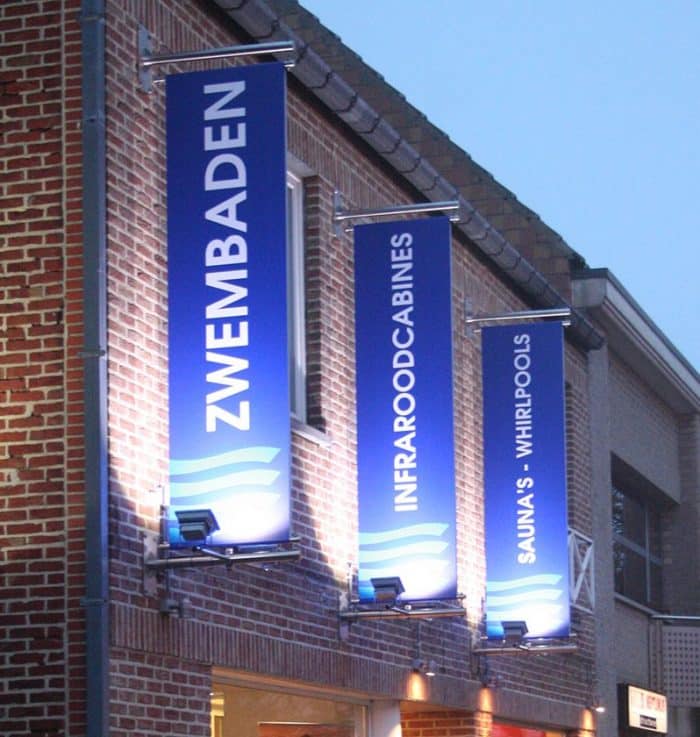 – De zeer stevige banierhouders in Ral 9005 mat zwart blijven mooi recht hangen.